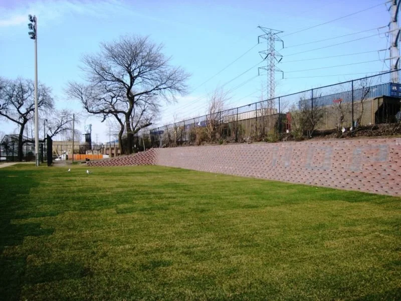 AGS landscape stripped the entire park of its surface soil, brought in new topsoil, supervised the installation of a sprinkler system, put down thousands of square yards of athletic sod, built a retaining wall to enlarge the park next to railroad tracks, and created four beautiful baseball fields and one football/soccer field.